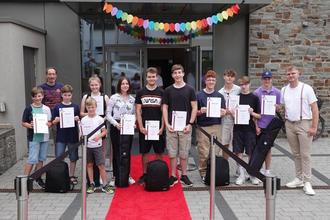 AHRTAL/GRAFSCHAFT. TW. Es gibt einen Sieger des ersten Ahrtal Kinder- und Jugendfilmpreises: das Werk heißt „By Yourself“, die Macher dahinter sind Maurice Trouvain, Stefanie Otto, Levin Kothmann und Nicolas Fell. Standesgemäß wurden die vier am Sonntag bei der Siegerehrung zusammen mit allen anderen Jungfilmern über den roten Teppich in den Lantershofener Winzerverein geführt, wo alle auserwählten Werke zur Aufführung kamen, ehe die Sieger verkündet wurden. Für die gab es prall gefüllte Filmrucksäcke mit hochwertigen Kameras und Zubehör. Sponsoren hatten dafür gesorgt, dass die Kids am Ende nicht mit einem Pokal oder einem Plastik-Oscar nach Hause gehen müssen, sondern ihrem möglichen neuen Hobby mit professioneller Ausrüstung begegnen und es vertiefen können.