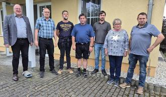 v. l.: Bürgermeister Guido Nisius, Ortsbürgermeister Werner Wirz, Manuel Vogt, Andreas Gödderz, Erster Beigeordneter Christoph Wirz, Ingrid Breuer, Stefan Wirz