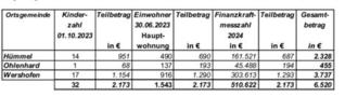 Die Verbandsumlage 2024 wird gemäß § 8 Abs. 1 der Verbandsordnung des Kindergartenzweckverbandes Armuthsbachtal auf 6.520 EUR festgesetzt und wie folgt auf die Mitgliedsgemeinden verteilt: