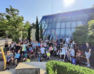 Die Klassen 7 des EKG mit den, vom Förderverein gespendeten, Schwimmhilfen.