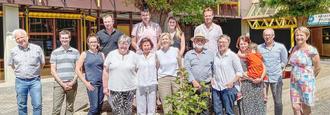 Die Kolleginnen und Kollegen mit der Schulleitung und stellvertretend für das Kollegium, die Mitglieder des örtlichen Personalrats, untere Reihe von links: Stellvertretender Schulleiter Dr. Klaus Müller, Marc Mertens (Personalrat), Anette Seidel (Schulwechsel), Regina Görtz (seit 1988), Gabriele von Essen (seit 1996), Uschi Grohe (seit 2009), Georg Meyer (seit 1991), Andrea Grimmer-Pütz (seit 2004), Michaela Sawade (Schulwechsel), Büroleiter Heiner Schmickler (seit 1998 an der BBS, insgesamt 45 Jahre Kreisverwaltung Ahrweiler) und Schulleiterin Gundi Kontakis. Obere Reihe von links unser Personalrat: Daniel Schlich, Steffen Langner, Carolin Schmitz und Daniel Kloth. — Foto: BBS