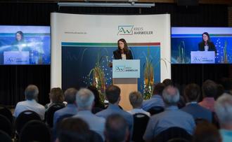 Landrätin Cornelia Weigand begrüßte die Teilnehmenden des ersten Wissenschafts-Praxis-Dialogs im Forschungsprojekt „KAHR“ in der Rheinhalle Remagen.