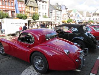 ADENAU. AGP. Ganz in der Hand von klassischen Automobilen befand sich am vergangenen Wochenende nicht nur der Nürburgring. Derweil dort der Oldtimer-Grand-Prix über die Bühne ging, war die Histo-Tour des Automobilclub von Deutschland (AvD) bereits in vollem Gange, Sie startete am Mittwoch im Eifeldorf und kehrte am Freitag noch einmal zum Abschluss auf die Nordschleife zurück. Am Samstag ab 17 Uhr bestimmten die Oldtimer dann das Leben in der Innenstadt von Adenau. Wieder einmal hieß es: Oldie meets Jazz! Die inzwischen weit über die Grenzen der Eifel hinaus bekannte und beliebte Veranstaltung lockte nicht nur die Fahrer historischer Automobile, sondern auch Mengen von Schaulustigen, die sich dieses Treffen nicht entgehen lassen wollten. Dunkle Wolken brauten sich über Adenau zusammen, als die ersten Klassiker in dem abgesperrten Bereich am Markt eintrafen. Vereinzelt wurden Regenschirme aufgespannt,