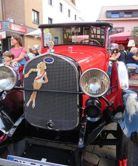als es auch schon zu nieseln begann. Kurze Zeit später, die Uhr zeigte wenige Minuten nach sechs Uhr an, spielte die Jazzband „Schräglage“ auf. „You are my sunshine, my only sunshine“ der Titel des Songs, der augenscheinlich auch andernorts Gehör fand, wie ein Oldiefahrer bemerkte. Denn mit Ertönen dieses Musikstückes riss die Wolkendecke auf und die Sonne brach durch. Da gab es kein Halten mehr, die aus dem Westerwald angereiste Jazzband verließ das schützende Vordach der Sparkasse und wanderte durch die Menge. Klassische Stücke wie „Icecream“ und die verjazzte Version von „My Bonnie is over the ocean“ begeisterten die Zuschauer. Wieder einmal zeigte sich, dass mit der Verpflichtung von „Schräglage“ die richtige Musik geboten wurde. Die fast nur aus Rentnern bestehende Gruppe, zwei Berufsmusiker, zwei pensionierte Lehrer und ein noch aktiver Steuerberater kamen gerade von einem Auftritt in Regensburg und spielen in den nächsten Tagen in München. „Wir kommen immer wieder gerne zu diesem Termin in Adenau,“ wie einer von ihnen versicherte. Derweil begutachteten die Besucher die vielen und auch seltenen Autos. Ältester Wagen ein Ford-Pickup aus dem Baujahr 1928, gefolgt von einem Morris von 1939. Ein Jaguar XK war aus Nordfriesland gekommen, Porsche mit Kennzeichen aus Dänemark und Schweden machten deutlich, wie weite Wege man in kauf genommen hatte, um nach Adenau zu kommen. Ein alter und stattlicher BMW-Alpina aus Ennepe, Mercedes 220 S aus Köln, Alfa Romeo, ein seltener Porsche 924 S Le Mans, Baujahr 85, und mit dabei eine klassische Ente aus Dinslaken. Vom Ferrari Testarossa bis hin zum VW-Käfer mit gespaltener Heckscheibe, man konnte sich nicht genug satt sehen. Satt essen konnten sich die Besucher auch. Ob Kibbeling, Pommes, Frikandel-Spezial oder die vielen Pizzen, deren verführerischer Duft über einem Teil des Geländes schwebte, es war für alle etwas da. Und dass mit der wärmenden Sonne nicht nur ein frisch Gezapftes sondern auch ein guter Tropfen von der Ahr wohl schmeckte, das gehört