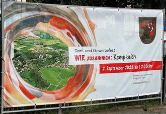 Für das Dorf- und Gewerbefest, wie die neue Bezeichnung jetzt heißt, hat das Orga-Team mit Dominik Schmitz, Jan Keller, Wolly Müller, Patrick Groß und Silke Warto ganze Arbeit geleistet und die Weichen für einen hoffentlich unvergesslichen Veranstaltungstag gestellt. Mit einem eigens entworfenen Logo wird es etwas Neues geben. Ein Strudel, gehalten in den Farben der Ortsgemeinde und des Ortswappens, lenkt den Blick auf eine Gesamt-Luftaufnahme von Kempenich. „Gemeinsam sind wir die Ortsgemeinde Kempenich, gemeinsam stellen wir etwas Einzigartiges auf die Beine“, verspricht Ortschef Dominik Schmitz.