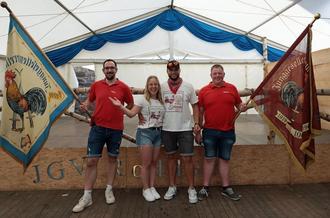 Der Junggesellenverein Rodder feiert das neue Hahnekönigspaar.