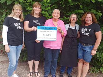 Die Mitarbeiterinnen des Adenauer Markts für Leib und Seele freuen sich über die Spende.