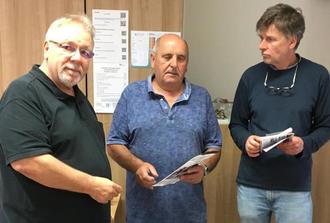 HKC Mitarbeiter (Architekt) Hans-Theodor Arenz in Insul mit Bürgermeister Ewald Neiß und dem Bürger Florian Trummer.