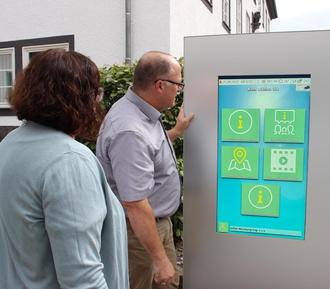 Informations-Säule am Rathaus in Adenau technisch auf dem neuesten Stand, barrierefrei und Energie sparend