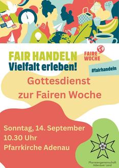 Am Sonntag, 14. September, 10.30 Uhr gestalten wir den Gottesdienst in der Pfarrkirche Adenau zur Fairen Woche und laden damit ein, die Vielfalt der Menschen hinter den Produkten des Fairen Handels zu entdecken und uns mit ihnen im Gebet zu verbinden.