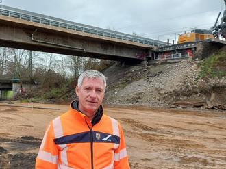 Stefan Schmitt an der Baustelle der B9-Brücke in Sinzig.