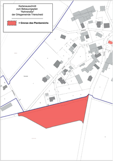 Der Ortsgemeinderat von Trierscheid hat am 28.09.2022 in öffentlicher Sitzung den im beschleunigten Verfahren nach § 13b BauGB aufgestellten Bebauungsplan „Kehrstraße“ nach § 10 (2) BauGB als Satzung beschlossen. Die ortsübliche Bekanntmachung erfolgte am 11.11.2022 im Mitteilungsblatt „Adenauer Nachrichten“ der Verbandsgemeinde Adenau.
