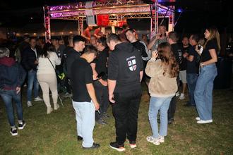 Der Samstag stand wettermäßig noch unter einem guten Stern, so dass bis fast um fünf Uhr nachts gefeiert wurde. Der Sonntag begann regnerisch, was aber zum Glück nicht von Dauer war. So konnte der traditionelle Gottesdienst und die anschließende Kranzniederlegung am Ehrenmal der Gefallenen im Trockenen stattfinden.