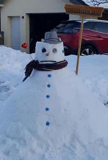 Winterfreuden anders: Ein stattlicher Schneemann begrüßte am Eingang von Bauler