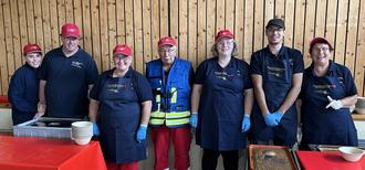 Das DRK-Verpflegungsteam rund um Bernd Schricker (Mitte) heimste für seine Bolognese-Sauce und die Nudeln viel Lob ein.