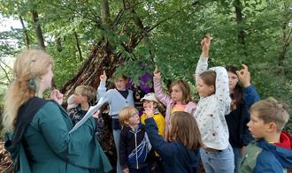 Weiter ging es mit einer kreativ und anspruchsvoll ausgearbeiteten Schnitzeljagd, wo jedes Kind - egal welchen Alters – voller Interesse und Spannung mitwirkte. Ziel war die Schutzhütte am Eichenbacher Flur, wo eine große Schatzkiste mit kleinen Präsenten auf die Jäger wartete.
