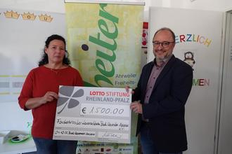 Frank Zwanziger, Geschäftsführer der Lotto-Stiftung, übergab Kathrin Römermann von der Levana Schule die Spende.