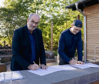Bernhard Jüngling und Tobias Wohlleben bei der Vertragsunterzeichnung