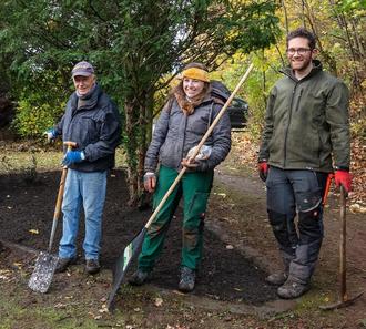 ADENAU. Anfang November trafen sich trotz oder gerade wegen des schlechten Wetters 22 Menschen im Alter von sechs bis 84 Jahren, um den Adenauer Kreuzweg winterfest zu machen. Los ging es um elf Uhr. Mit Radlader und Traktor wurden alte Baumstämme zur Naturbühne zwischen Station 5 und 6 gebracht, damit bei zukünftigen Konzerten Sitzplätze vorhanden sind. Die Hauptmannschaft erschien pünktlich um 13.30 Uhr. Bewaffnet mit Hacken, Rechen, Besen und Schüppen machten sie sich ans Werk und wurden für ihr Erscheinen belohnt. Es hörte sofort auf, zu regnen. Ein Trupp reinigte das Umfeld vom „Heiligen Josef“, lockerte den Boden, mischte ihn mit Mulch und pflanzte 15 kg Narzissen bzw. Krokusse ein. Andere entfernten Unkraut, sägten die abgestorbenen Buchsbäume ab, die der Buchsbaumzündler dahingerafft hatte und pflanzten zwei Blumeninseln, ebenfalls mit Narzissen und Krokussen, zwischen Station 1 und 3 an. Dann wurden die Wasserabläufe gereinigt, damit das Wasser in den Hang ablaufen kann. Unterstützt mit Gerätschaften des Adenauer Bauhofs gingen die Arbeiten schnell von Hand. Um 16 Uhr trafen sich alle dann zu Kaffee, belegten Brötchen, Kuchen und einer Tasse Bier am Konzertplatz, vorbereitet vom Budenpersonal Günter und Inge Nett, Herrmann Josef Romes, Maria Rodenkirch, Bärbel Mayer sowie Bauers Jupp. So kamen an diesem Tag mehr als 65 Arbeitsstunden zusammen. Als Dank erhielten alle einen Originaldruck vom Adenauer Kreuzweg, gezeichnet von Heimatforscher Wolfgang Pantenburg. Alle, die mit einer Spende den Erhalt der Anlage unterstützen wollen, erhalten ebenfalls einen Originaldruck.