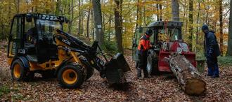 Mit schwerem Gerät wurden die Baumstämme bewegt.