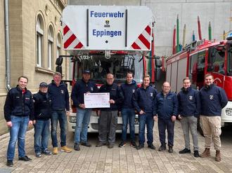 Feuerwehrleute aus Barweiler bei der Spendenübergabe an die Eppinger Kameraden.