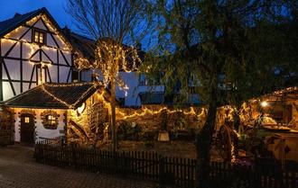 ADENAU. Samstag, 9. Dezember, 16.30 Uhr: Es regnet in Strömen als der Männergesangsverein Adenau einen Soundcheck durchführt. Nur wenige Freunde und Förderer des Säujassevereins sind anwesend. 16.55 Uhr: 10.000 LED-Lichter leuchten das Bauernmuseum und den Konzertplatz aus. 17 Uhr: Viele rote Jacken erscheinen aus dem Dunkeln und treten ins Licht. 20 heimatbewusste Adenauer Karnevalisten. Der Elferrat ist da. Schön anzusehen mit ihren Ausgeh-Jacken in Nikolausrot. Dann die Adenauer Feuerwehr mit 25 Kameraden, die ein anstrengendes Jahr hinter sich hatten und hier in der weihnachtlichen Atmosphäre entspannen wollten. Es ging Schlag auf Schlag und innerhalb von zehn Minuten war kein Platz mehr frei und der Männergesangsverein zeigte sein Können. „O du Fröhliche“, „Leise rieselt der Schnee“ und viele weitere Weihnachtsklassiker. Unterstützt von 100 Zusatz-Sängern, die die Lieder auswendig konnten oder aus den verteilten Liederheften ablasen. Je länger sie sangen, umso wärmer wurde es um ihr Herz und die Stimmen wurden lauter. Ob es nun an den Liedern lag oder am Glühwein, das ist nicht genau zu sagen. Nach der etwa einstündigen Darbietung verabschiedete sich der Männergesangsverein unter langanhaltendem Applaus zu wohlverdientem Glühwein und Suppe nach Großmutters Art. Jetzt kam Highlight Nummer zwei: Willi Kiesewalter (Rhythmus-Instrument und Gesang) sowie Norbert Weiler (Akkordeon und Gesang). Beginnend mit zwei Weihnachtsliedern zum Warmwerden, schwenkten sie dann, zu Ehren des Karnevalsvereins, auf Karnevalslieder um. Was bei allen Zuhörern gut ankam, da Willi zu manch einem Lied die Kiesewalter'sche Tanzeinlage von sich gab. Es war ein Konzert an einem Ort, wo die Zeit scheinbar nicht vergeht, ein Theater der Sinne, wo Bilder einen Klang haben. Die tolle Resonanz der Besucher und Aktiven schürt die Hoffnung, dass sich das Säujasse-Bauernmuseum in den kommenden Jahren weiterhin etablieren wird. Wo sich Menschen mit Fantasie und Tatkraft dafür einsetzen, dass dieses Kleinod im Herzen Adenaus noch vielen Generationen Freude und Zuversicht geben kann. Während der gesamten Weihnachtszeit kann das Bauernmuseum noch in seiner abendlichen Beleuchtung bis etwa 21 Uhr bewundert werden.