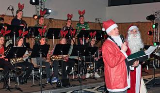 Verpackt in sattem Big-Band-Sound und garniert mit einer gehörigen Portion Swing brachten die Big-Bands das begeisterte Publikum in Weihnachtsstimmung. Die befreundeten Musiklehrer Michael Rodarius und Arnt Böhme, beide im Weihnachtsmann-Outfit, leiteten musikalisch ihre mit Rentierhörnern kostümierten Bands und moderierten durch den Abend.