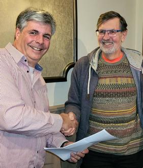 Ehrung von Wolfgang Groß (r.) durch Ulrich Stumm
