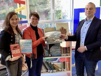 Herr Schoep überreichte die Bücherspende an die Schülerbibliothek.