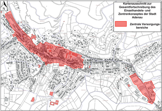 Mit Beschluss des Stadtrates Adenau vom 27.11.2025 wurde die Gesamtfortschreibung des Einzelhandels- und Zentrenkonzeptes abschließend gebilligt und tritt mit dieser Bekanntmachung in Kraft. Die Abgrenzung der zentralen Versorgungsbereiche ist aus dem dieser Bekanntmachung beigefügten Kartenausschnitt ersichtlich