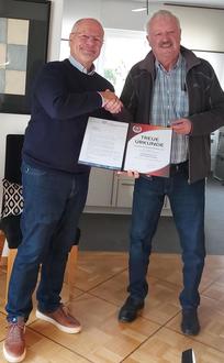KREISSTADT. Der Vorsitzende der Kameradschaft ehemalige Soldaten, Reservisten und Hinterbliebene (KERH) im Kreis Ahrweiler, Oberstabsfeldwebel (OStFw) a.D. Günter Schwarz, dankte Brigadegeneral (BG) a.D. Hans Joachim Fischer für seine 50-jährige Treue zum Deutschen Bundeswehrverband (DBwV) und überreichte ihm die Ehrenurkunde und Ehrennadel. BG Fischer übernahm 2005 das Logistikzentrum des Heeres (LogZH) in Bad Neuenahr-Ahrweiler und unter seiner Führung wurde das LogZH im Jahr 2006 mit dem Fahnenband des Bundeslandes Rheinland-Pfalz ausgezeichnet. Im Jahr 2008 wurde er als Stabsabteilungsleiter in den Führungsstab des Heeres versetzt und mit militärischen Ehren, im Rosengarten, aus dem Standort Bad Neuenahr-Ahrweiler verabschiedet. Seine Treue zur Stadt behielt „Achim“ Fischer aber bis heute bei. Er wohnt mit seiner Familie immer noch in Bad Neuenahr-Ahrweiler. Als engagierter ehrenamtlich tätiger Mitbürger ist er vielen Einwohnern bekannt. So war er 2016/2017, für die obligatorische Laufzeit von einem Jahr, Präsident des Rotary Clubs Bad Neuenahr-Ahrweiler und ist auch heute noch als aktiver „Rotarier“ unterwegs. Aber auch die KERH und den DBwV verlor er nie aus den Augen und freute sich über die persönliche Ehrung. Weitere Informationen unter www.dbwv-kerh-aw.de.