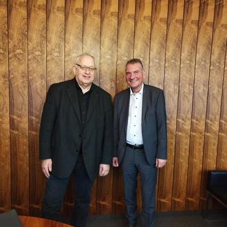 Erster Stadtrat Schulz (r.) begrüßt den neuen Rentenberater im Wittinger Rathaus, Herrn Gunter Wachholz (li.)