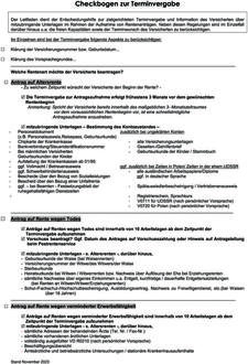 Der „Checkbogen zur Terminvergabe“ gibt Ihnen eine Orientierung zur zielgerichteten Terminvergabe und Information darüber, welche Unterlagen Sie zu den Beratungsterminen mitbringen müssen.