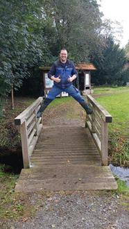 Das Bauteam hat sich dann auch gleich vor Ort selbst von der Standfestigkeit des Brückengeländers überzeugt (siehe Foto).