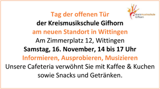 Alle Unterrichtsangebote sind im Internet unter www.kms-gifhorn.de verfügbar und können dort online gebucht werden. Unter dem Reiter „Anmeldung“ kann je nach Verfügbarkeit direkt ein Einstieg ohne Warteliste erfolgen. Fragen beantwortet Frau Niebuhr gerne montags, mittwochs und donnerstags in der Zeit von 13:00 bis 18:00 Uhr sowie dienstags von 10:00 bis 14:00 Uhr und freitags von 8:30 bis 13:00 Uhr telefonisch unter der Rufnummer 05831 4459-825. Eine Kontaktaufnahme per E-Mail an: k.niebuhr@kms-gifhorn.de ist auch möglich.