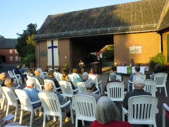 Plastau. Die Sonne meinte es an diesem Nachmitttag beim Freiluftgottesdienst im Rondell in Plastau gut, mit den zahlreichen Teilnehmern/rinnen aller Altersklassen, beim Friedensgottesdienst.