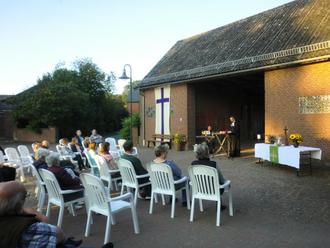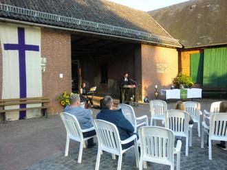 Dazu hatten Mitglieder des Kirchenvorstandes und weitere Helfer Stühle sowie einen Altar aufgestellt. Per Handylautsprecher wurde zum Beginn das Glockengeläut der Zasenbecker und Radenbecker Kirche übertragen. Dr. Sandra Nostheide stimmte die Anwesenden aus Radenbeck, Plastau und Zasenbeck musikalisch auf diesen Gottesdienst ein und begleitete auf dem Keyboard die weiteren angekündigten Lieder. Pastor Florian Herterich ging in