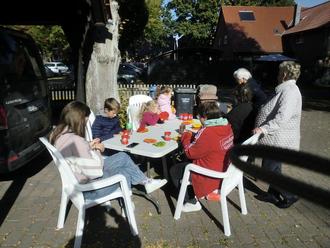 Bei bestem Sonnenschein bastelte die Kindergottesdienstgruppe vor dem Jugendheim in Zasenbeck.