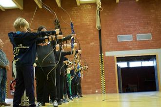 Beim Bogenschießen ging es etwas ruhiger zu, nach dem Erklären der Grundlagen, durften die Teilnehmer konzentriert und mit viel Körperspannung den Pfeil gezielt an die Scheibe schießen.
