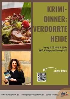 Erleben Sie einen „mörderischen“ Abend mit einem kulinarischen 4-Gänge-Menü unserer Köchin Dörte Franke. Zwischen den einzelnen Gängen gibt es eine Autorinnen-Lesung aus dem mystischen Regional-Krimi „Verdorrte Heide“, in dem es um ungeklärte Vermisstenfälle aus den Siebzigerjahren und um eine alte Sage geht, die ein dunkles Geheimnis in sich birgt…