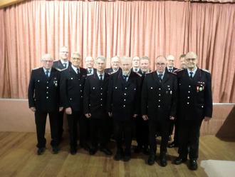 Foto der Alters- und Ehrenabteilung der Freiwilligen Feuerwehr Zasenbeck mit neu gewähltem Gruppenführer Xaver Jordan (zweiter von rechts).