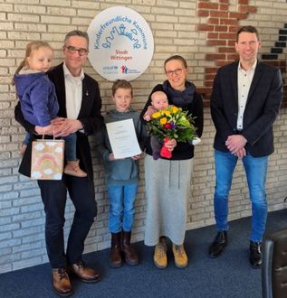 Ein freudiger Anlass brachte Familie Herterich ins Rathaus Wittingen: Die jüngste Tochter, Nilla Isabel Josephine, ist das siebte Kind der Familie und wurde durch den Bundespräsidenten mit einer Ehrenpatenschaft gewürdigt. Stadtbürgermeister Ritter überreichte feierlich die Ehrenurkunde und ein Patengeschenk im Namen von Bundespräsident Frank-Walter Steinmeier.
