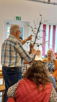 Dieses ist nur ein kurzer Abschnitt der Erinnerungen an Hochzeitsbräuche der 50-iger bis 60-iger Jahre. Moderator Henning Huth von der Projektgruppe „Alte Schule“ zeigte den Anwesenden zwei mit braunen Ästen und jeweils 2 weißen Kerzen geschmückte Bäumchen vor, mit der Frage was diese denn für eine „Bewandnis“ haben könnten? Einige der Anwesenden erkannten diese als „Hochzeitsbäumchen“, die bei Hochzeiten von den Brautmägden und Bräutigamsknechten, dem Brautpaar zugeteilt wurden, bei der Trauung mit am Altar standen und dem Brautpaar immer zur Linken und zur Rechten Seite standen. Beim Ehrentanz des Brautpaares, begleiteten diese Bäume sie auf der Tanzfläche. Irgendwann um 1960 war es vorbei mit der Sitte der „Hochzeitsbäumchen“. Gottseidank konnten die zwei Originale erhalten werden und vor dem Wegwerfen gerettet werden.