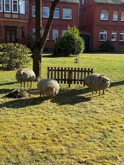 Auch Schafe, hier auf "Schraders Platz", gehörten zur Osterdeko in Radenbeck
