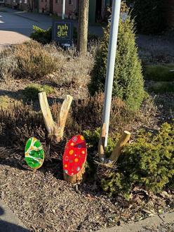 Wer zur Osterzeit durch Radenbeck fuhr oder zu Fuß ging, dem fielen überall bunte „Farbkleckse“ an den Straßen auf. Bei näherem Betrachten waren Ostereier aus Holz, Osterhasen aus Ästen und bunt bepflanzte und dekorierte Nester, auf Schraders Platz sogar eine Gruppe selbst gebastelter Schafe, vor einem Zaunfeld zu erspähen. Diese bunten Dekorationen haben im Vorfeld vor einigen Wochen mit Mitglieder und Freunde der Aktionsgruppe „Alte Schule“, mithilfe einiger Kids mit viel Liebe farbenfreudig und ideenreich gebastelt und lustig bemalt. Diese bunten vielfältigen Dekorationen wurden zur Verschönerung des Ortes, auch zur Erinnerung an die Passions- und Osterzeit an vielen Stellen im Ort aufgestellt. Es war also eine bunte Aktion, die tatsächlich ein Anschauen lohnte! Danke den Akteurinnen dieser schönen, bunten Aktion. hu.
