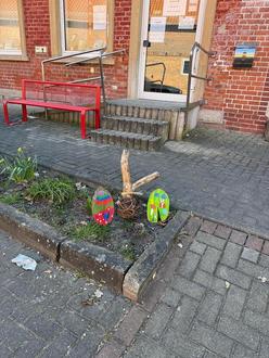 Osterdeko auch zur Einfahrt in die Wilhelmstraße