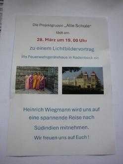 Die Projektgruppe "Alte Schule" Radenbeck hatte per Flyer zum Reisebericht Südindien mit Heiner Wiegmann eingeladen