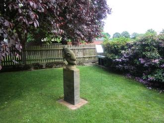 Moderne Skulpturen lockern das Gartenbild beim Besuch auf.