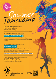In diesem Unterricht verschmelzen die energiegeladenen Elemente des Jazz Dance mit den rhythmischen Moves des Hip Hop. Jazz-Dance und Hip Hop sind "junge" Tanzrichtungen, die sich durch kreative und choreografische Bewegungen auf der Bühne auszeichnen. Elemente aus afrikanischen, europäischen und amerikanischen Tanztraditionen fließen hier zusammen und bieten ein großes Spektrum an Abwechslung und Kreativität und bietet neben dem Erlernen von technischen Elementen und konkreten Schritten auch eine wunderbare Körper- und Rhythmusschule.