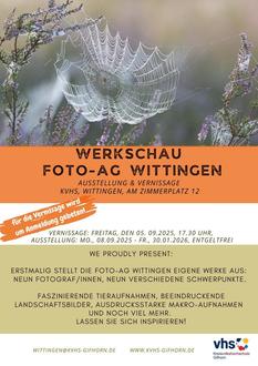 Die Vernissage eröffnet die Foto-Ausstellung „Werkschau der Foto-AG Wittingen“, die in Kooperation mit der Arbeitsgruppe gezeigt wird. Die Foto-AG in Wittingen besteht seit 3 Jahren. Die Kreisvolkshochschule freut sich, nun die erste Werkschau dieser noch recht „jungen“ Arbeitsgruppe zeigen zu dürfen.
